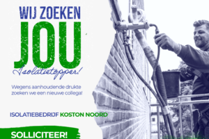 Wegens toenemende drukte zoeken wij nieuwe collega’s voor isolatiewerkzaamheden. Wat zoeken wij? Een gemotiveerde collega, liefst met ervaring op het gebied van woningisolatie! Je bent een aanpakker, hebt een goede werkmentaliteit, je bent collegiaal en je hebt géén last van hoogtevrees? Je hebt geen 9-5 mentaliteit en je bent op korte termijn beschikbaar? Dan ben jij onze […]
